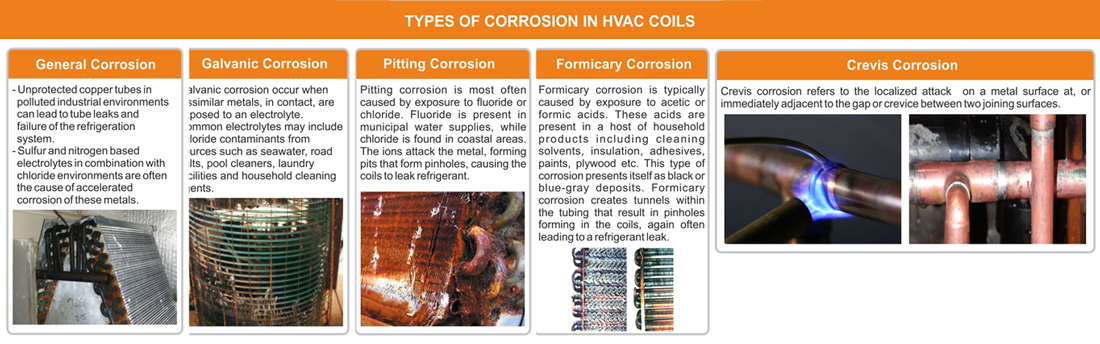 We represent market leaders and innovators in all sort of smart and nano coatings and their applications. We deal in anti-corrosion coatings for HVAC coils (ductables, VRVs and chillers). These coatings provide significant protection to copper tubes and aluminium fins without affecting the heat transfer/COP of the machine. Hence prevent unnecessary gas leakages by preventing pitting corrosion on Cu tubes and galvanic corrosion on Aluminium fins.